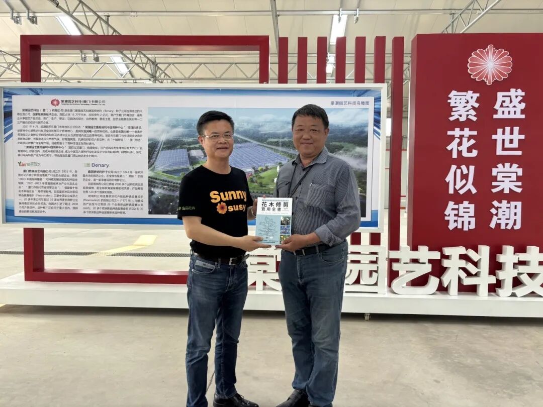 棠潮园艺科技董事长詹瑞琪、副总经理王佳梁等人热情接待并详细介绍了棠潮园艺科技的园区建设规划与当前育种研发的最新进展。詹董事长还提到棠潮园艺科技积极参与搭建中欧园艺产业创新交流平台,在2023至2024年,连续两年承办中国花卉种业知名品牌盛会--“厦门国际花卉新品种展”“(Xiamen International Flower Trials)”简称“新花展”(XIFT),并同期组织“新花奖”评选(“年度花卉新品种奖”、“年度杰出育种家”),助力花卉育种成果转化与新品种权保护。詹董事长表示,公司热切期待台湾的朋友在未来能够有机会参加新品种展,共同推动花卉产业的繁荣发展。