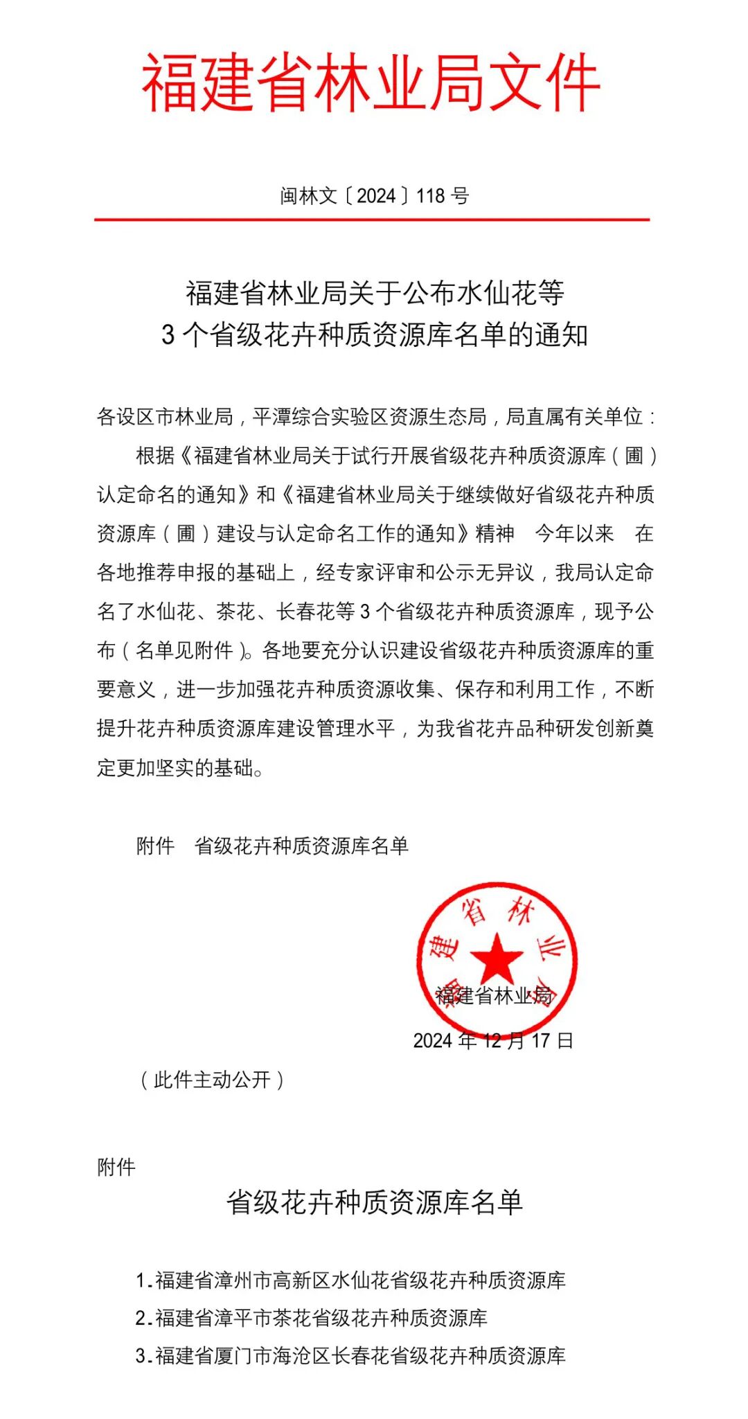近日,福建省林业局印发《福建省林业局关于试行开展省级花卉种质资源库(圃)认定命名的通知》和《福建省林业局关于继续做好省级花卉种质资源库(圃)建设与认定命名工作的通知》,在各地推荐申报的基础上,经专家评审和公示无异议,认定命名水仙花、茶花、长春花等3个省级花卉种质资源库。