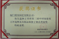 •2008年被授予2006-2007年福建省花卉产业发展贡献奖